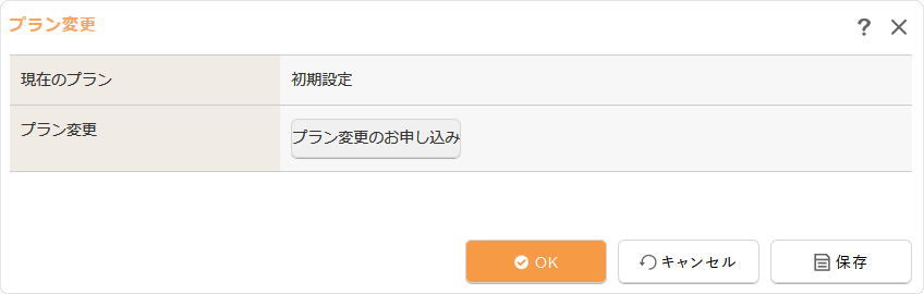 “プラン変更ダイアログ”が表示されますので、現在ご契約中のプランをご確認いただき、プランを変更したい場合は[プラン変更のお申し込み]ボタンをクリックして、プラン変更の手続きを進めてください。