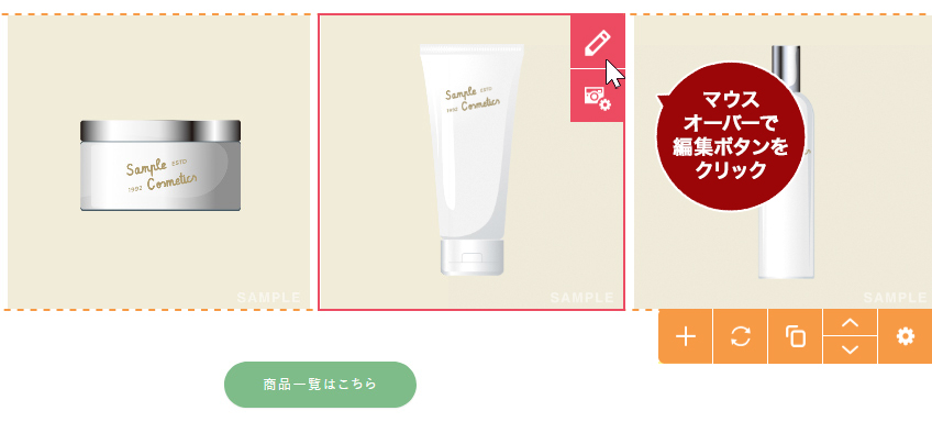 1 変更したい文字の上にマウスを合わせると枠線とメニューが表示されます。